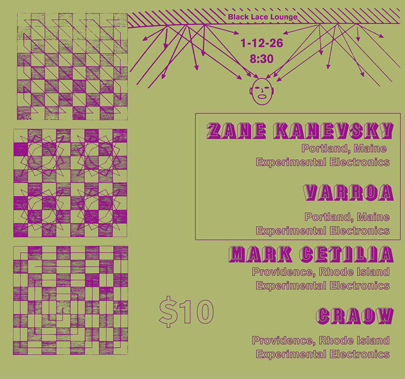 Looking forward to playing at Black Lace Lounge on the Monday, January 12th alongside Zane Kanevsky and Varroa who are both touring from Portland ME, and Providence favorite / legendary hockey enforcer Craow. 8:30pm | $10. More >>
